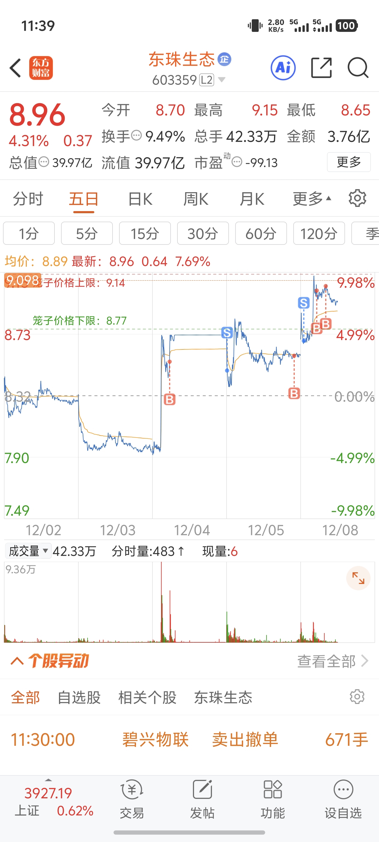 $东珠生态(SH603359)$ 不玩了 明天就走 不适合我这种韭菜