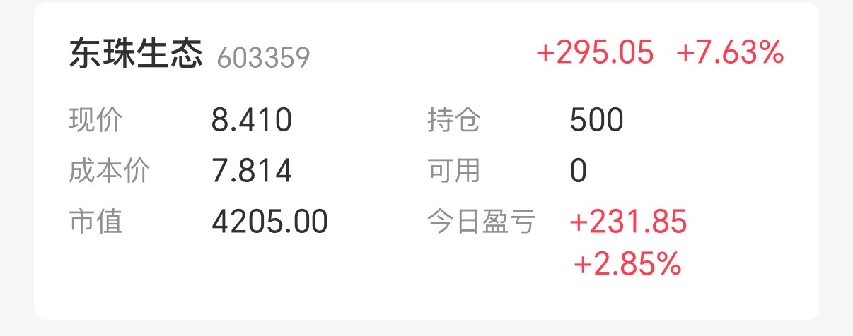 $东珠生态(SH603359)$ 只有500 股,赶紧跌下来让我买进啊,别涨了