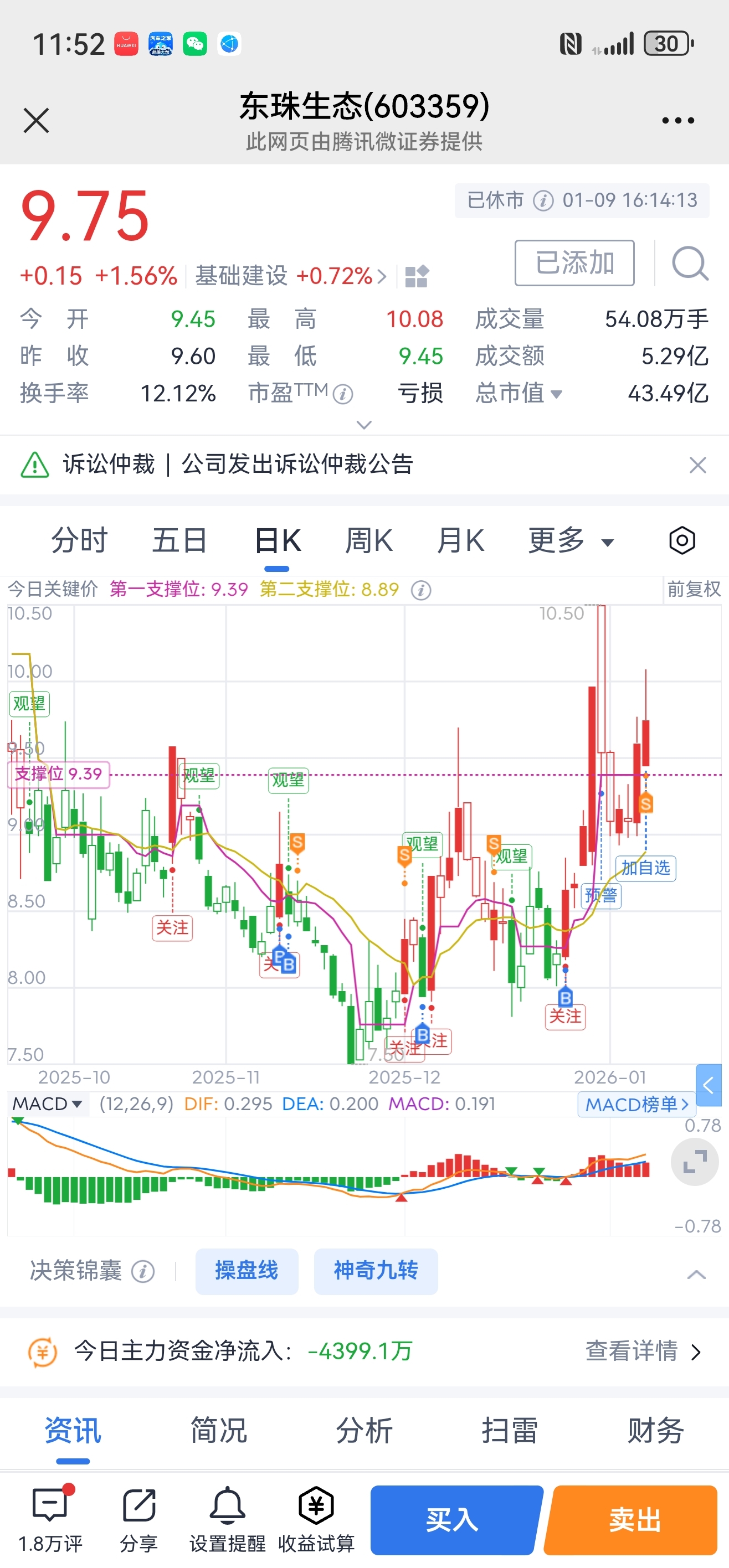 $东珠生态(SH603359)$ 还好昨天跑了