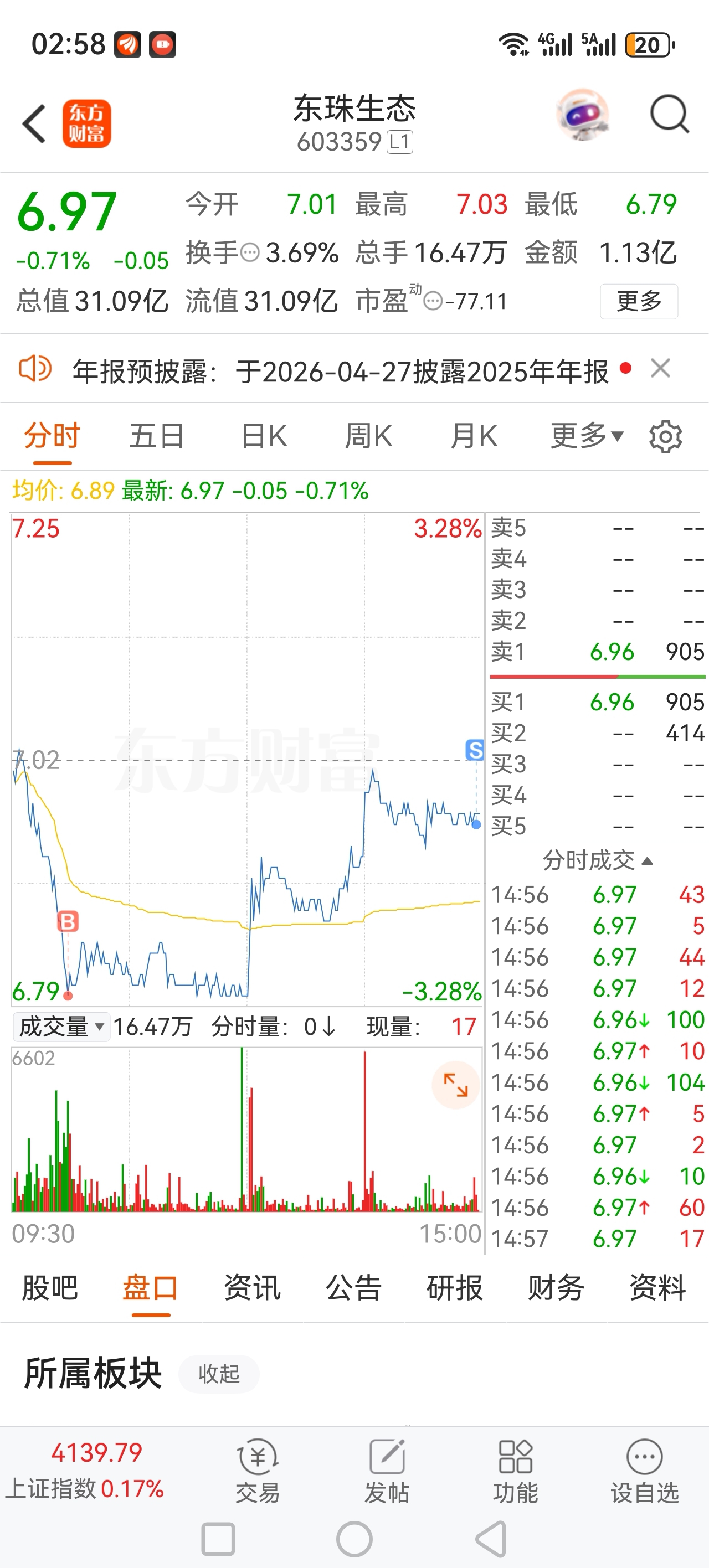 $东珠生态(SH603359)$ 能吃一毛是一毛。