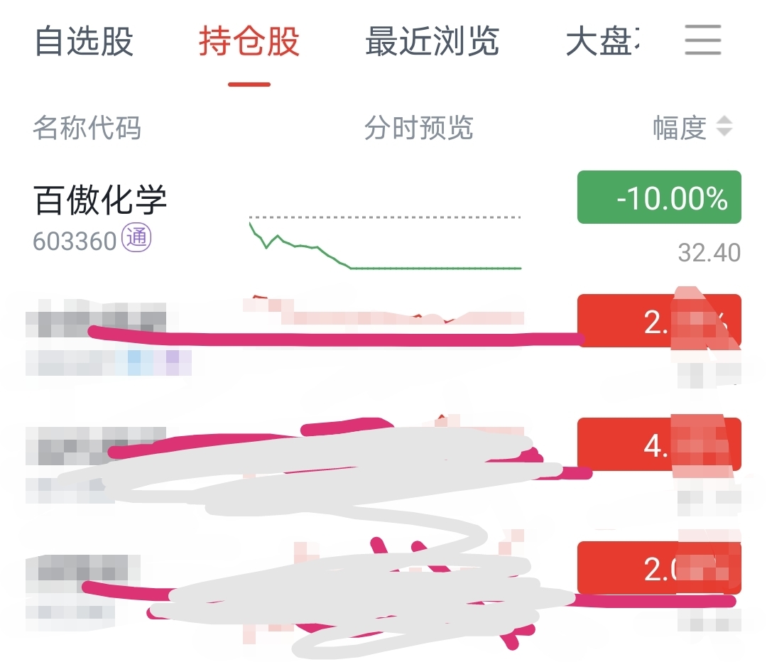 $百傲化学(SH603360)$ 年度第一看走眼的一只,怪我咯,昨天买今天跌停,明天再跌, 生吞我20cm,可见这庄有多鸡渴