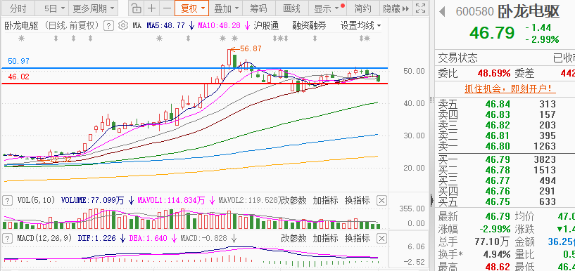 卧龙电驱:昨天是加速下行,但给到的是缩量状态。持续几天的缩量调整持续消磨短线ZJ耐心,八哥持续看好的是卧龙电区依托于出海技术领先的双轮驱动,正逐步向全球电驱和机器人核心供应商迈进,近期机器人产业链消息面也会不乏重磅刺激,可持续跟踪,昨天分时多重底先看今天是否能够持续站稳昨天低点,才能进一步验证昨天短期支撑,反之可能会持续磨底。