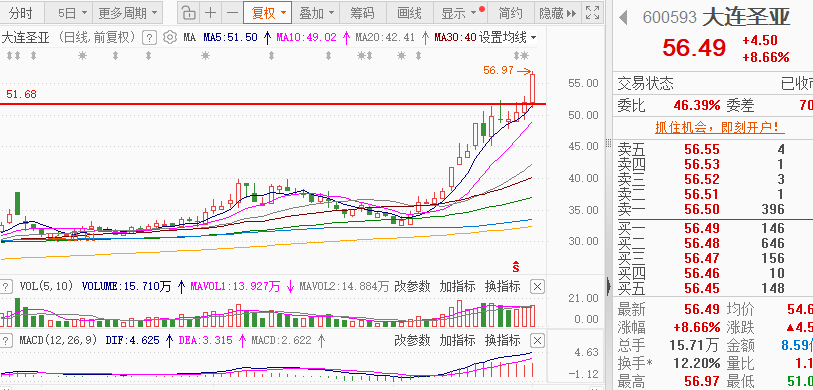 大连圣亚:昨天回踩5日线支撑后强势震荡上攻,盘中八哥一度盼着涨停,可惜人气热点还是差了点,温和放量走出大阳,短期动能持续释放,高位突破后短期市场节奏还是要考虑持续性,今天不排除主力小动作出现,可能会回踩下高位平台支撑,跟车的朋友依旧建议逢高作减持动作。