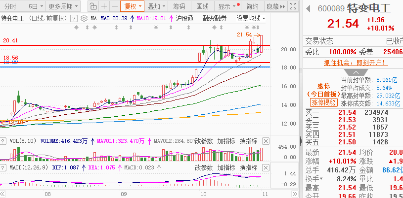 作为上周的跨周选手,昨天迎来首板也是相当的给力,还记得上上周的跨周选手吗?闻泰科技、赣峰锂业新朋友可以点好关注,看看首页前面的跟踪梳理。特变电工在全球能源转型和电网升级的历史机遇中,依托变压器的龙头凭借在特高压领域的技术优势,昨天一骑红尘,目前行程高位突破,但考虑到板块的持续性,可能今天维持高位震荡,仓位重的朋友优先考虑高位减半套利。而整体的高位突破短期需要维持高位回踩后才会持续发力,震荡看多。