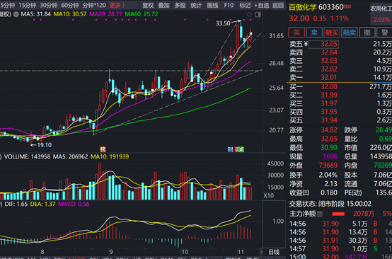 9月1日至10月20日横盘整理了将近两个月时间,之后突破并加速上涨。下周如果继续维持在ma10之上,就继续持股观察,若有效跌破可考虑降低一部分仓位,进行防守。