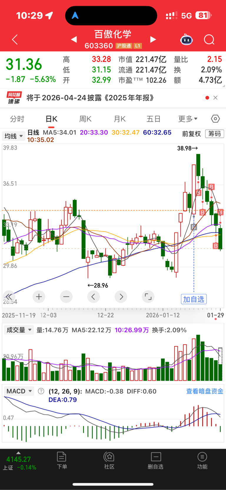$百傲化学(SH603360)$ 曾经发过毒誓,再买东B股我是G,这次大意了,真是脸都要抽肿
