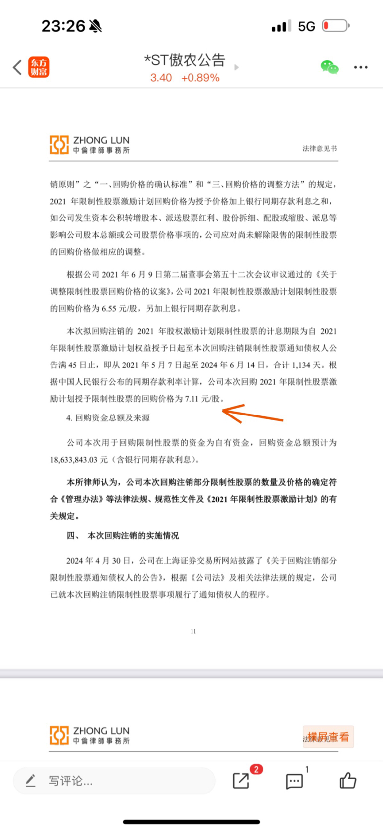 $*ST傲农(SH603363)$ 回购价7.11元每股