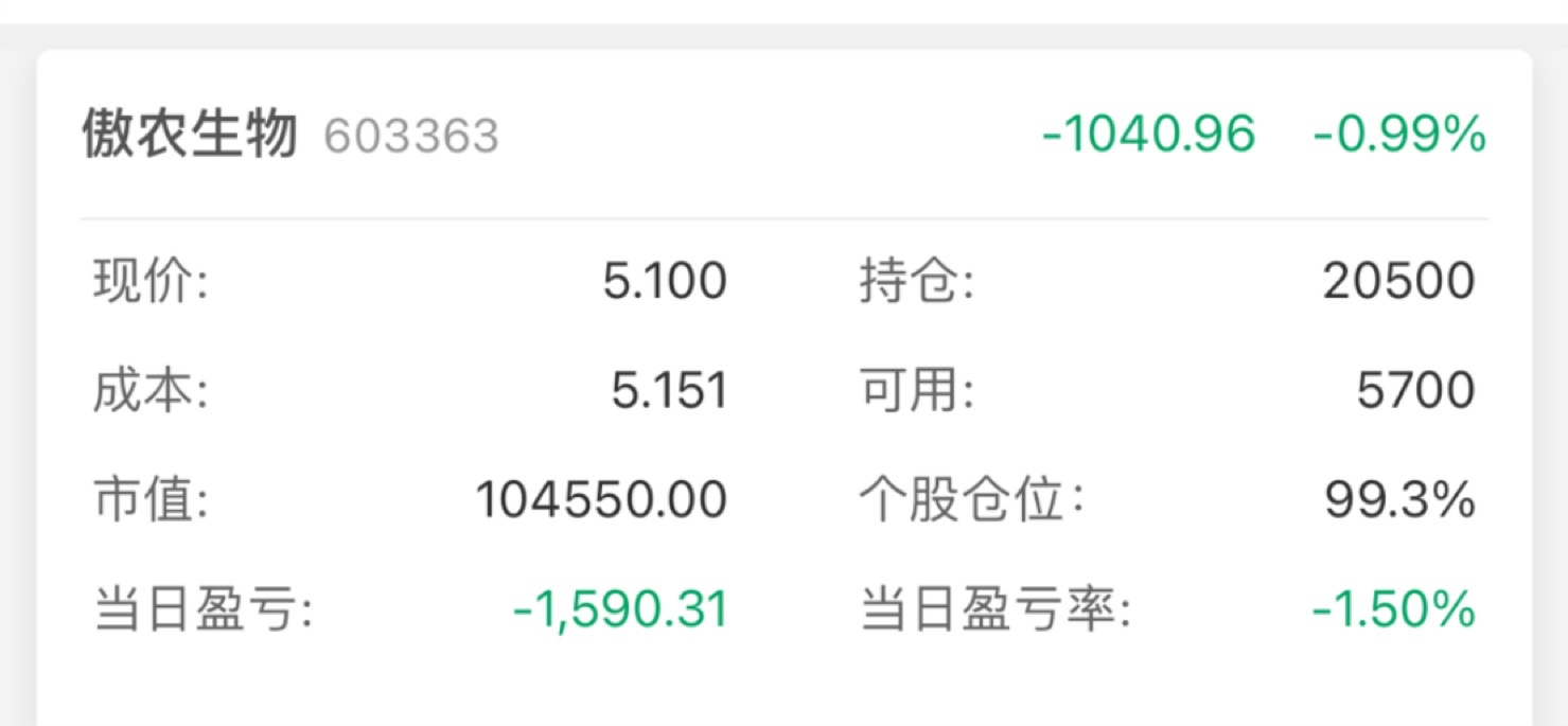 $傲农生物(SH603363)$ 何时能回本,我不玩了