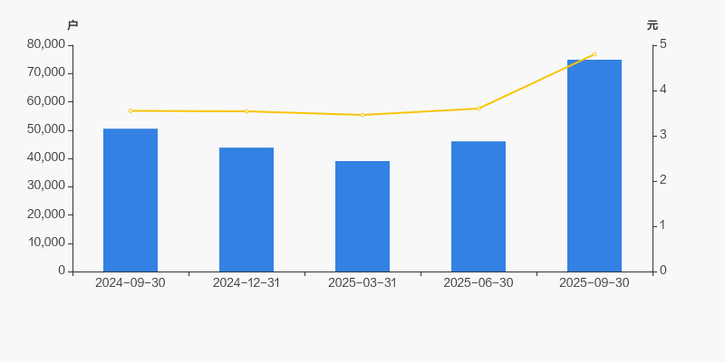 2024年9月30日至今,公司股东户数显著增长,区间涨幅为48.31%。2024年9月30日至2025年9月30日区间股价上涨35.21%。