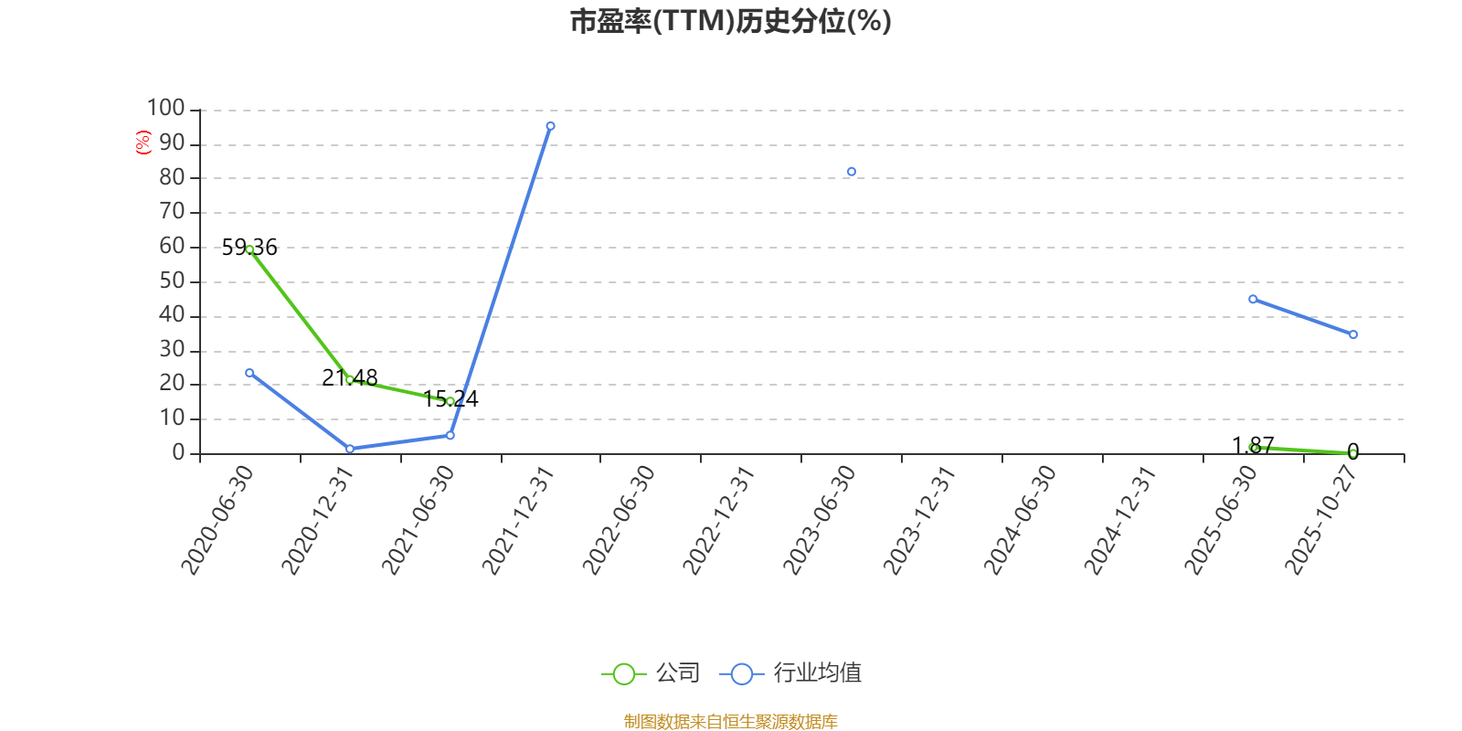 市盈率、市净率为负时,不显示当期分位数,会导致折线图中断。