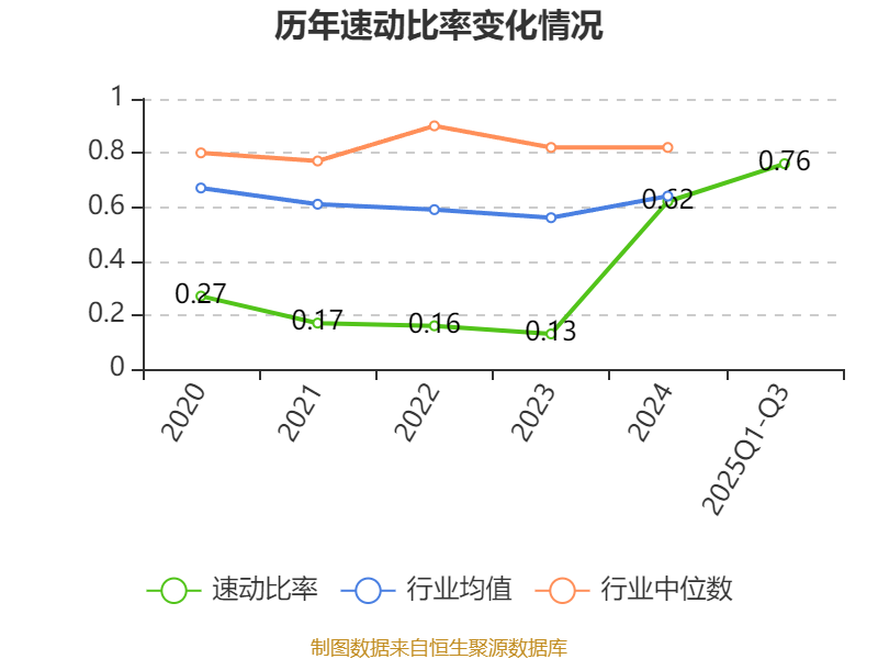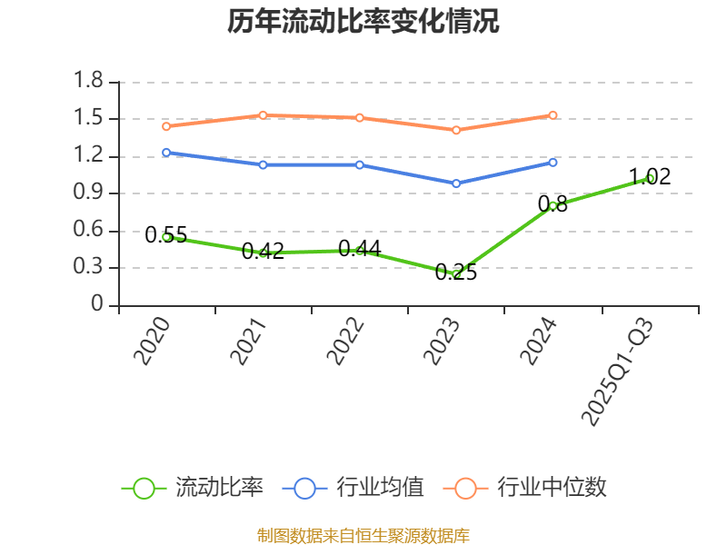 2025年前三季度,公司流动比率为1.02,速动比率为0.76。