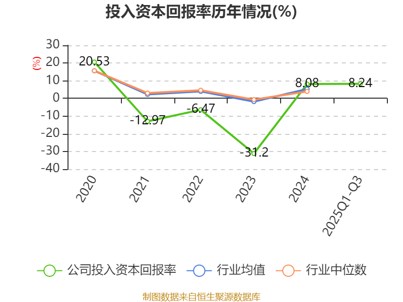 盈利能力方面, 2025年前三季度公司加权平均净资产收益率为13.96%。公司2025年前三季度投入资本回报率为8.24%,较上年同期上升16.79个百分点。