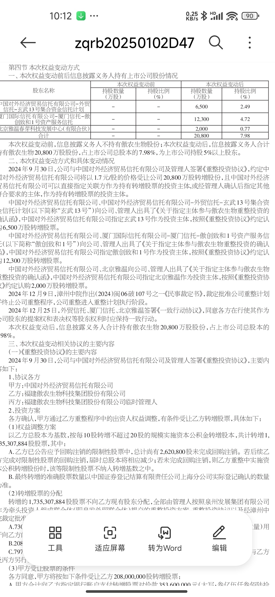 $傲农生物(SH603363)$ 友情提醒,傲农生物,去年引入的财务投资人今年12月29日解禁,成本1.7元,现在的价格已经有三倍的浮赢了,此消息每天发一遍
