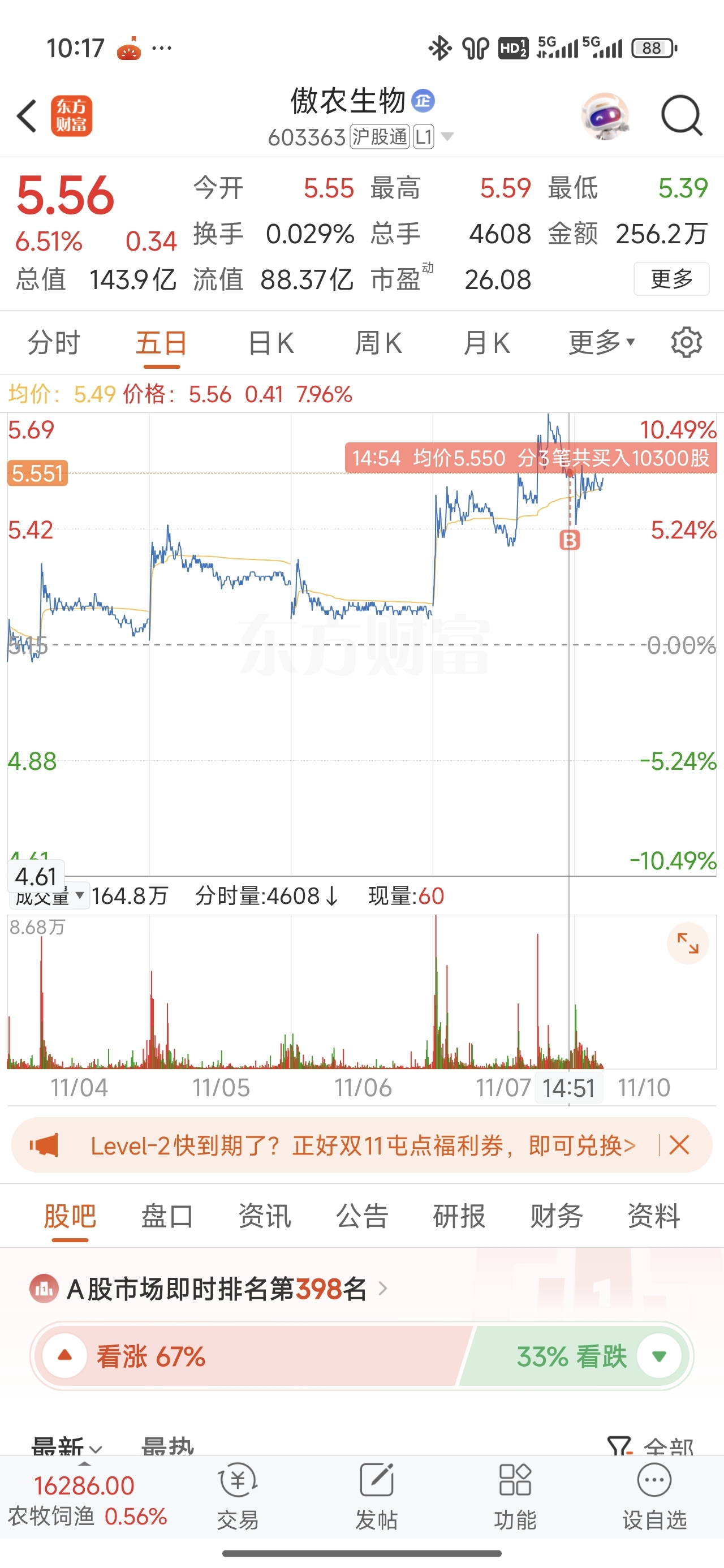 $傲农生物(SH603363)$ 主力啊,不就是因为我买了嘛,不至于吧