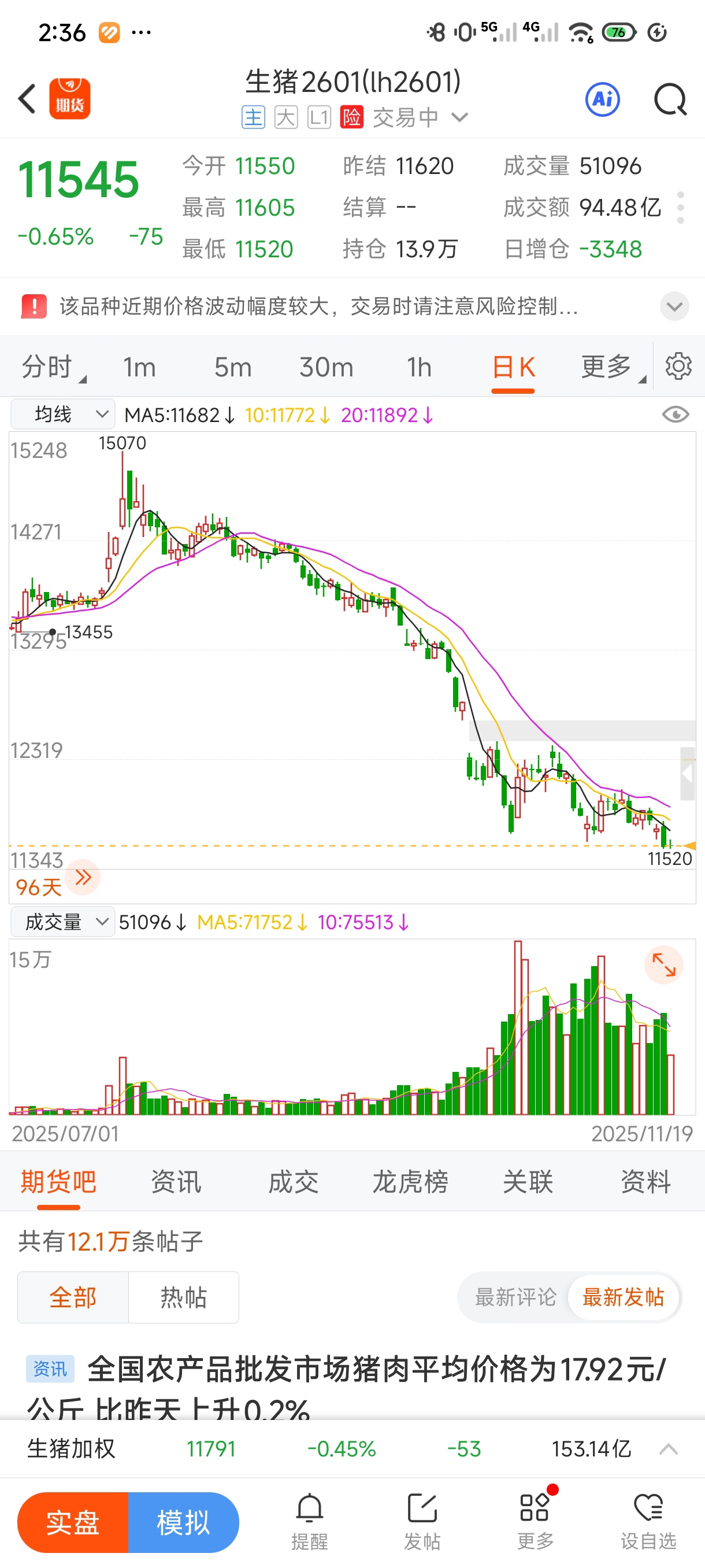 $傲农生物(SH603363)$ 生猪主力期货持续下跌,生猪价格还未筑底