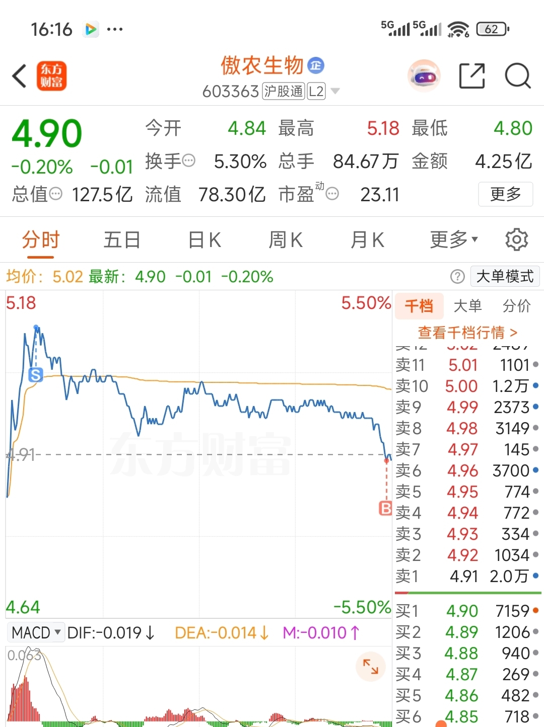 $傲农生物(SH603363)$ SB主力就用SB战法