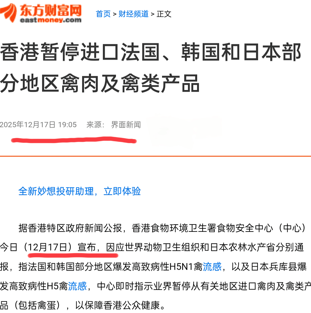 快讯:香港暂停进口欧美英法韩日禽肉及禽类产品!欧美地区正面临一波空前超级禽流感疫