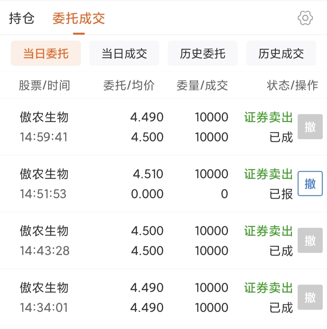 $傲农生物(SH603363)$ 尾盘卖了一半,实在受不了了,明天破4.47全卖了,恶心人