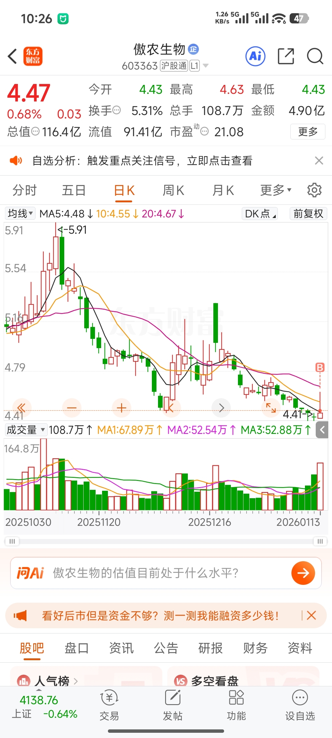 $傲农生物(SH603363)$ 兄弟们我来了,建仓建仓