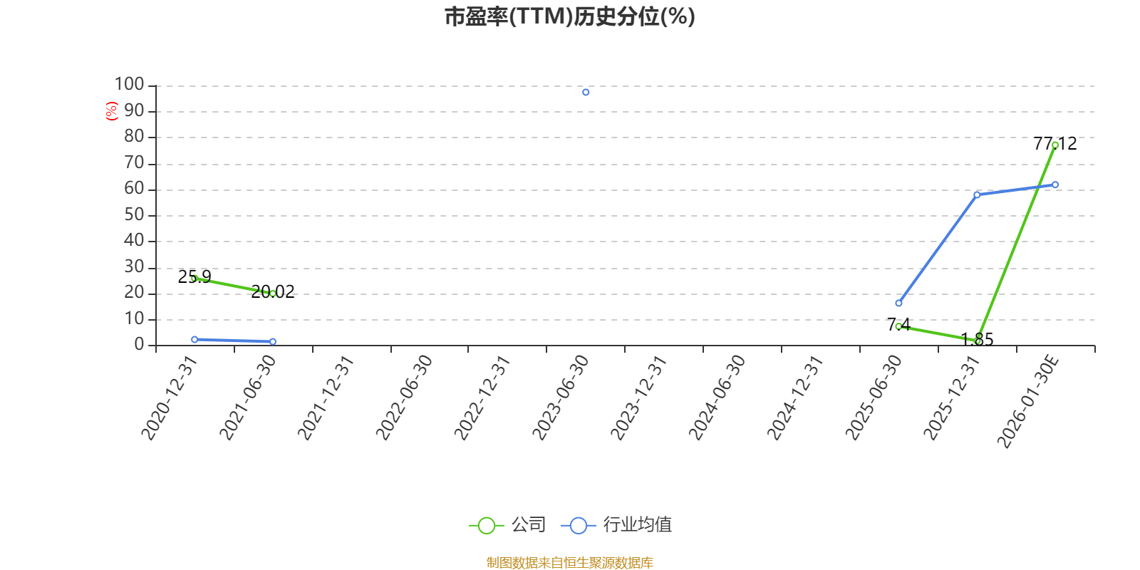 市盈率、市净率为负时,不显示当期分位数,会导致折线图中断。