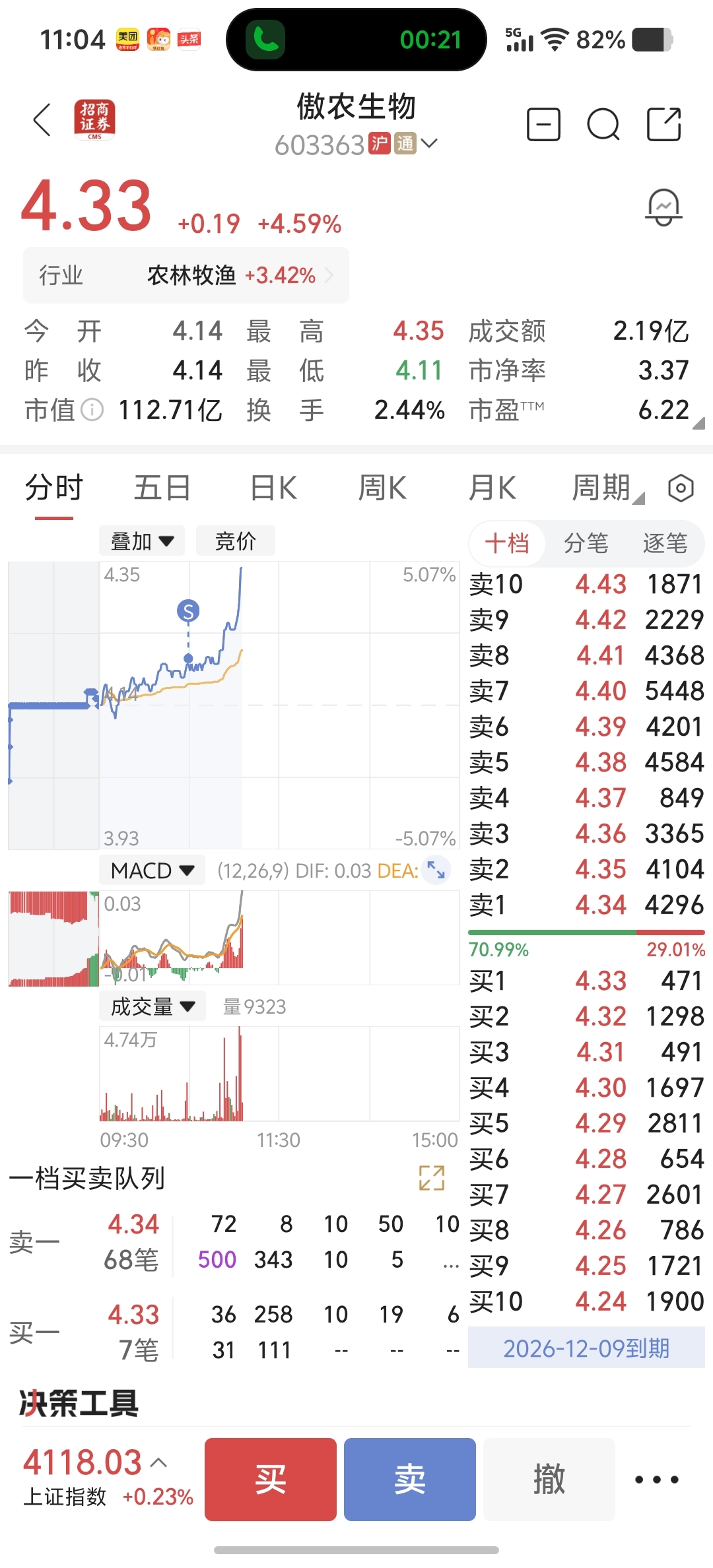 $傲农生物(SH603363)$ 我不卖他不涨,