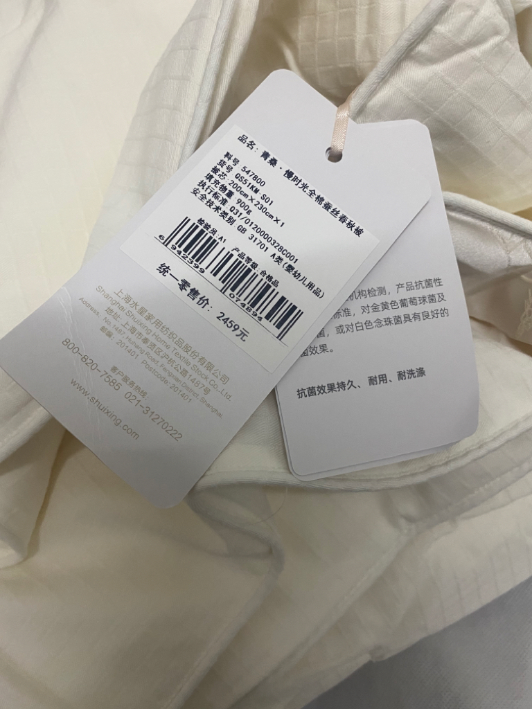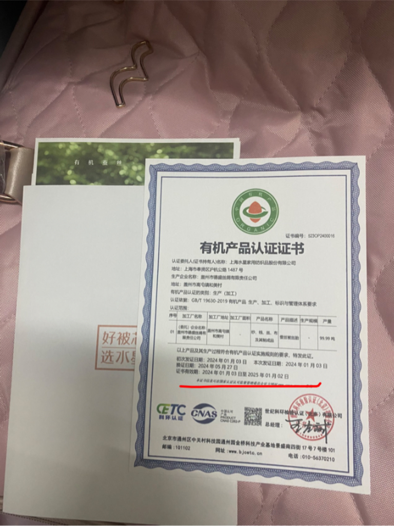 昨天500多买的蚕丝被,里面的证书居然是过期的,而且被子里全是线头,大公司的品控