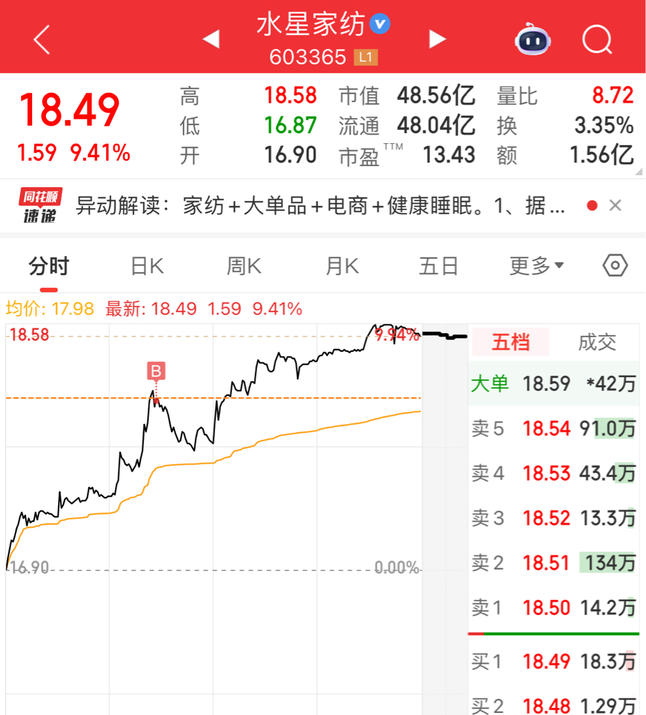 $水星家纺(SH603365)$  点火没点着,然后躺赢局!!