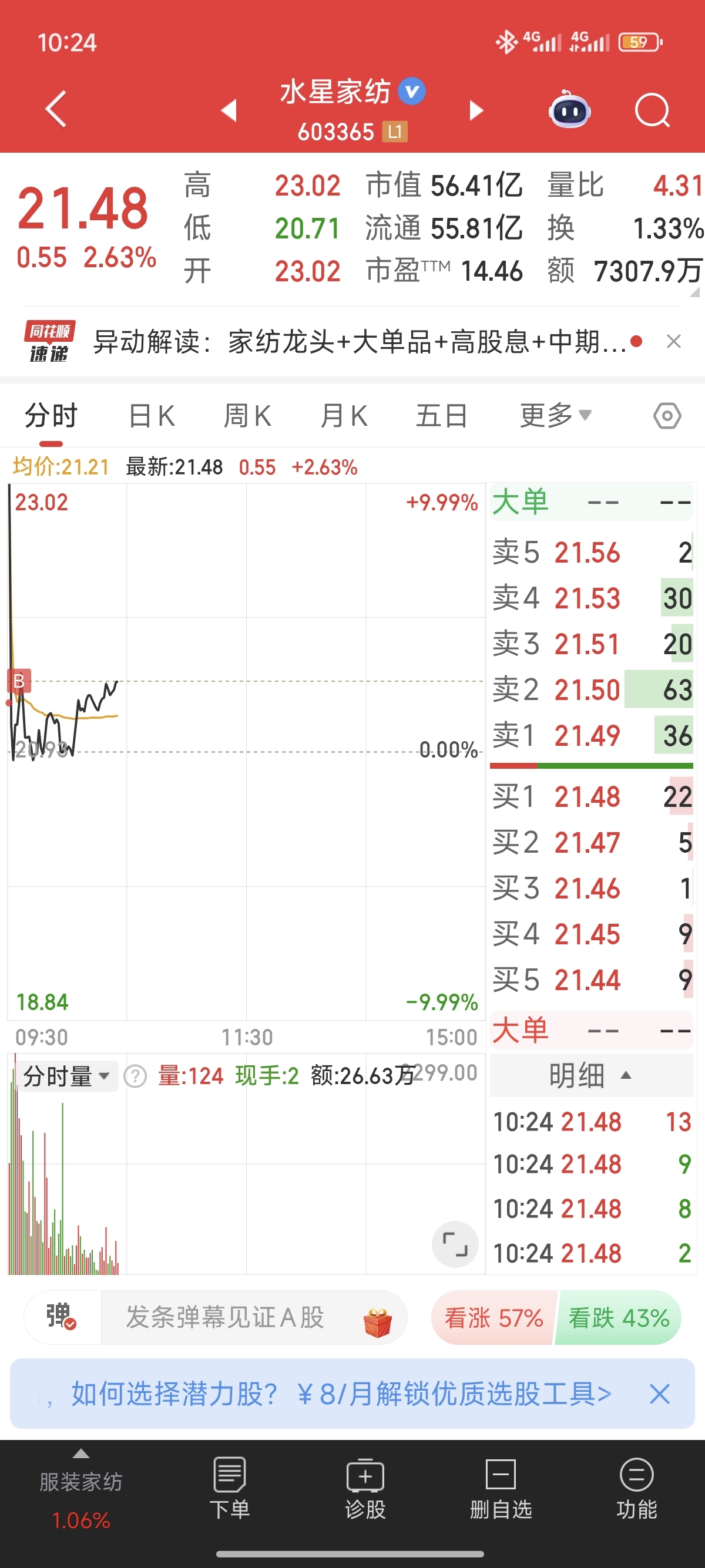 $水星家纺(SH603365)$ 给力点小老弟就差你了,就算不行明天别让老子亏