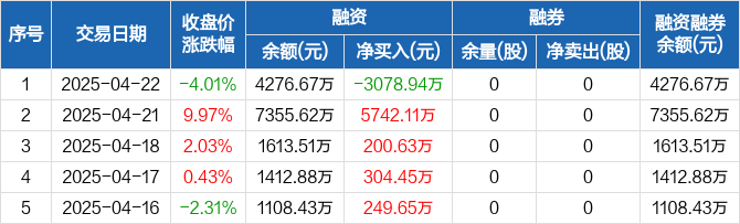 日出东方:融资余额环比下降41.86%,降幅两市第八(04-22)