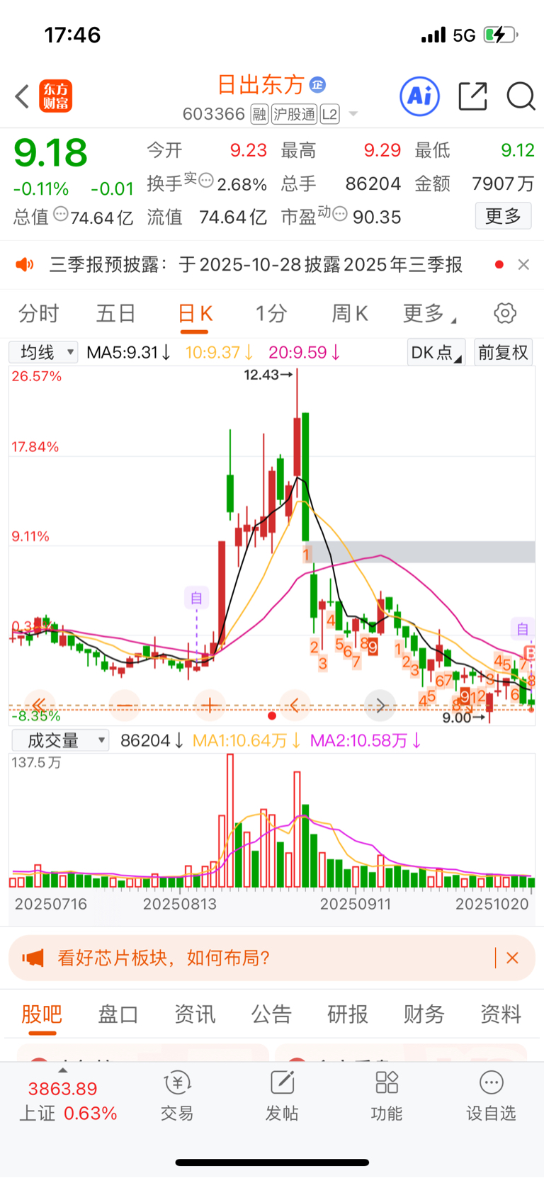 $日出东方(SH603366)$ 今天进场一起持股待涨了