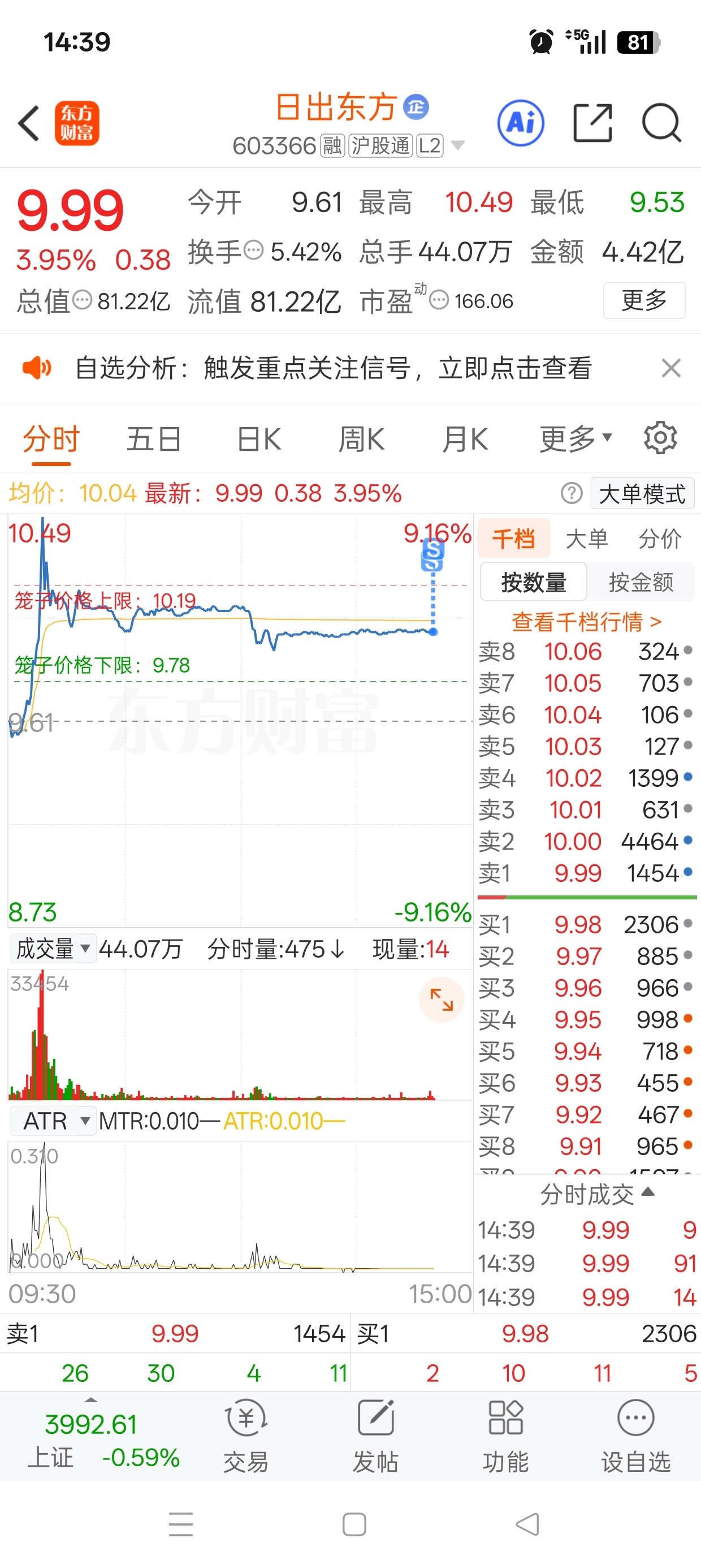 $日出东方(SH603366)$ 陪你玩了,上午还以为能封个板的,看来想多了