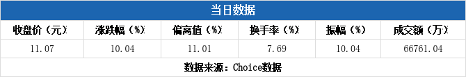 上交所2025年11月14日交易公开信息显示,日出东方因属于当日涨幅偏离值达7%的证券而登上龙虎榜。日出东方当日报收11.07元,涨跌幅为10.04%,偏离值达11.01%,换手率7.69%,振幅10.04%,成交额6.68亿元。