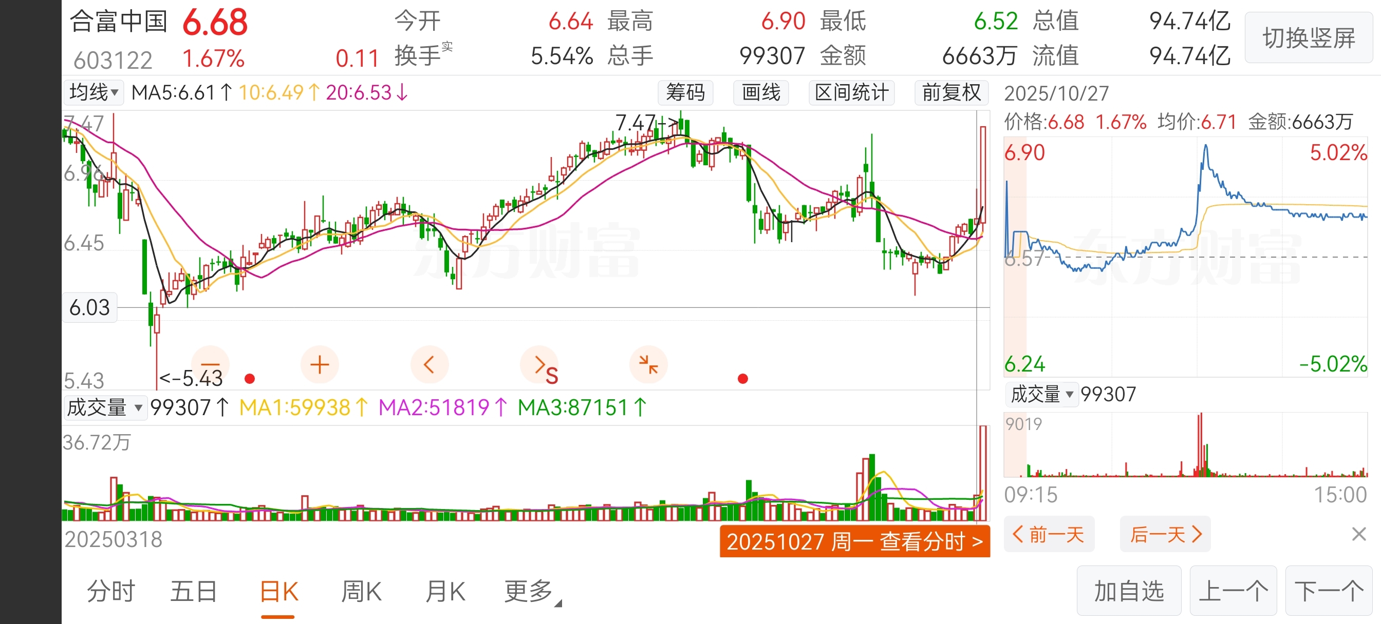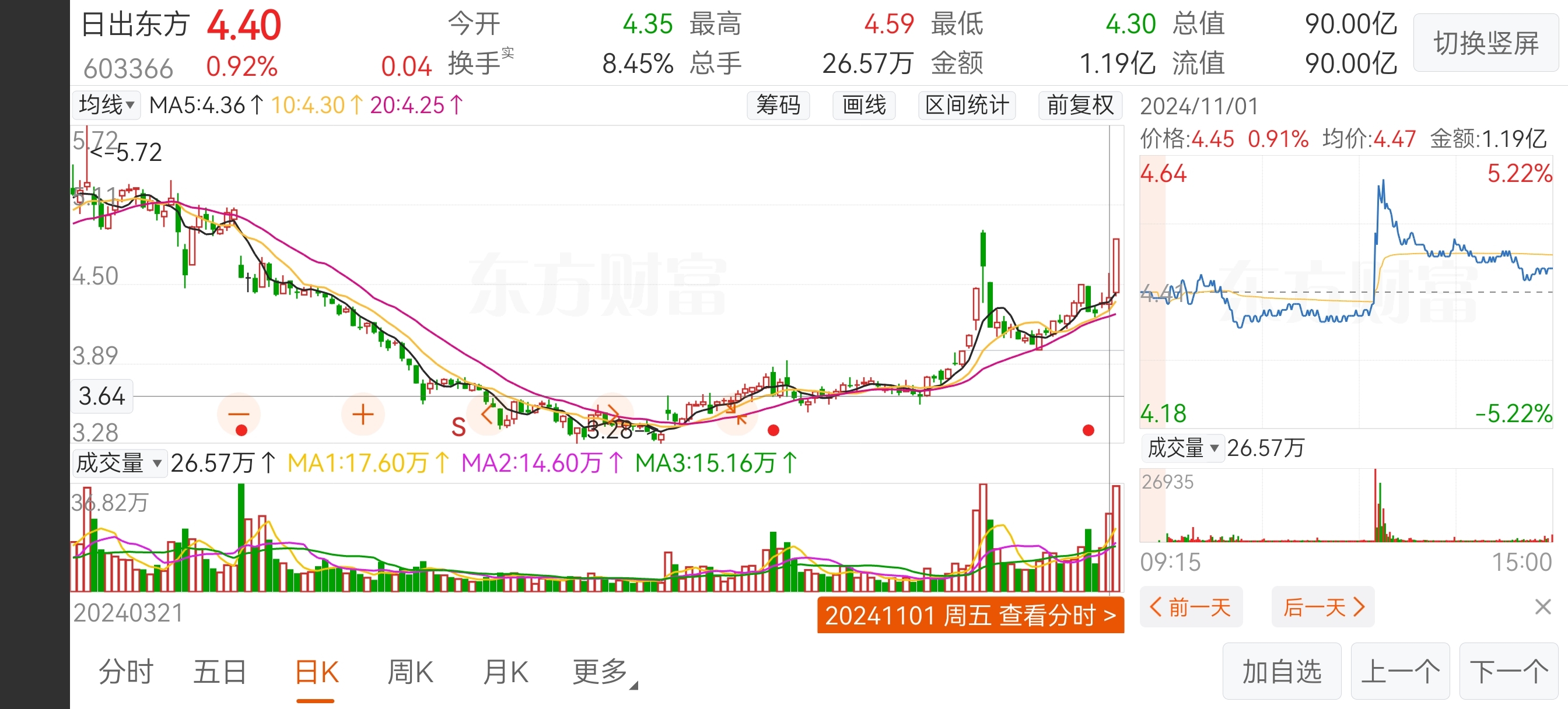 $日出东方(SH603366)$ 有点意思,去年的日出东方和今年的合富中国,在启动时间、前一交易日走势和前期趋势皆高度相似,去年日出东方周一下午启动,我在周末选股时有强烈预感这个股有搞头就在周一上午买入,第五个板就出清,今年忙着毕业还有一堆事,炒股热情也不太高,就完全忽略了。有兴趣者明年10月底可以再关注一下那些名字有说法的低价滞涨盈利题材不活跃的后排股,时刻关注启动信号