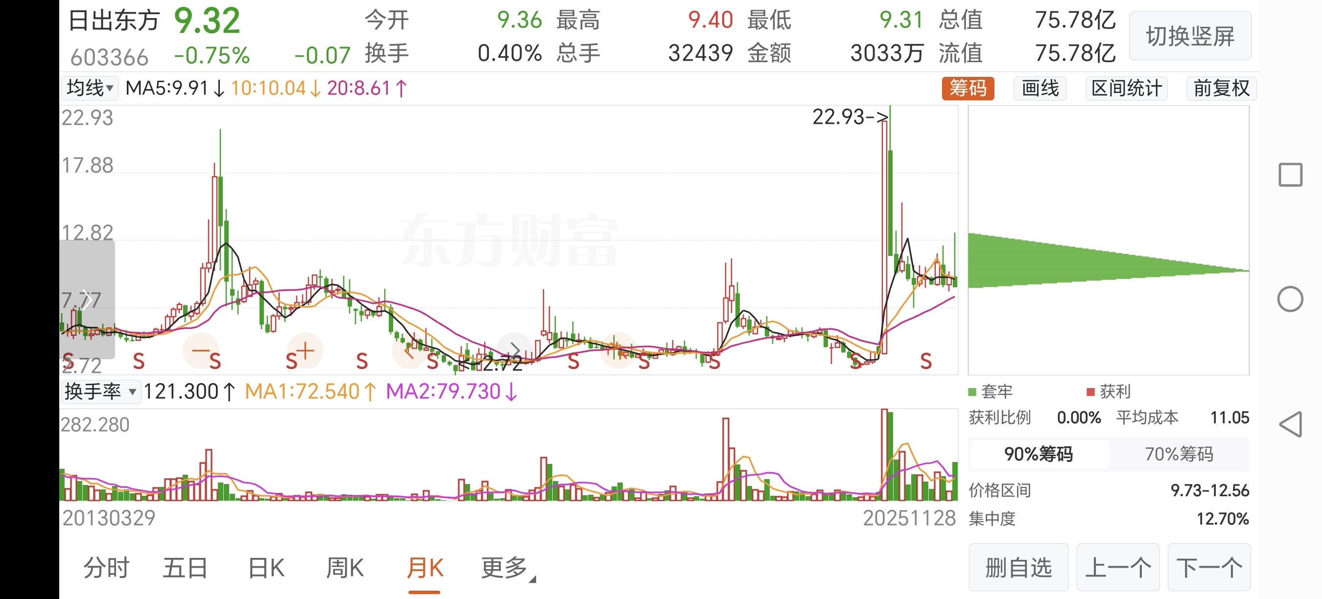 $日出东方(SH603366)$ 真狠,获利盘0