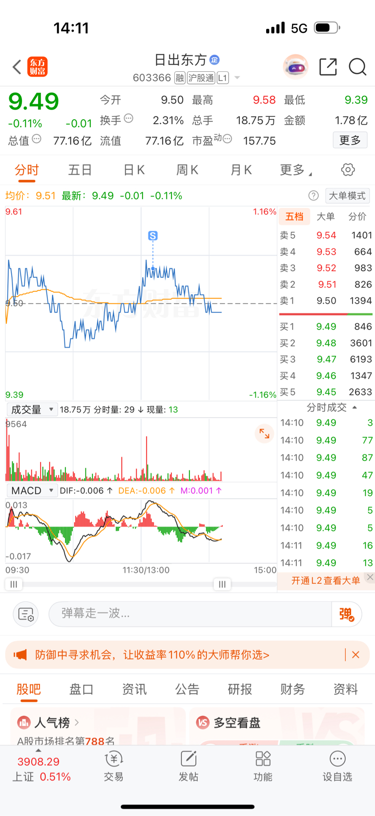 $日出东方(SH603366)$ 可以涨了,让弟兄们舒服一下吧