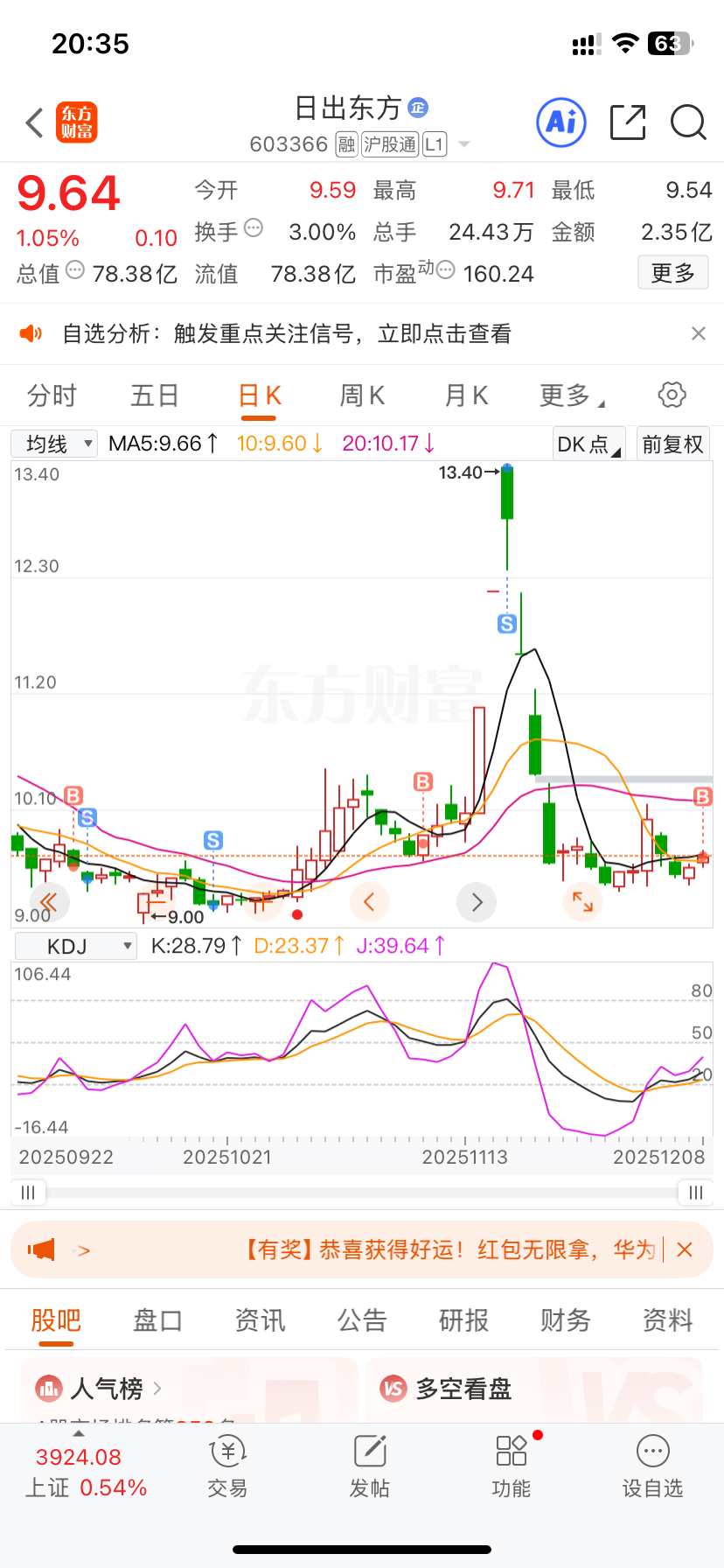 $日出东方(SH603366)$ 我回来了