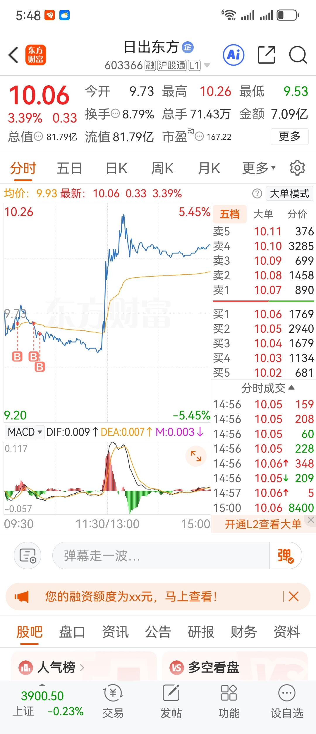 $日出东方(SH603366)$ 看好你 明天来个涨停吧