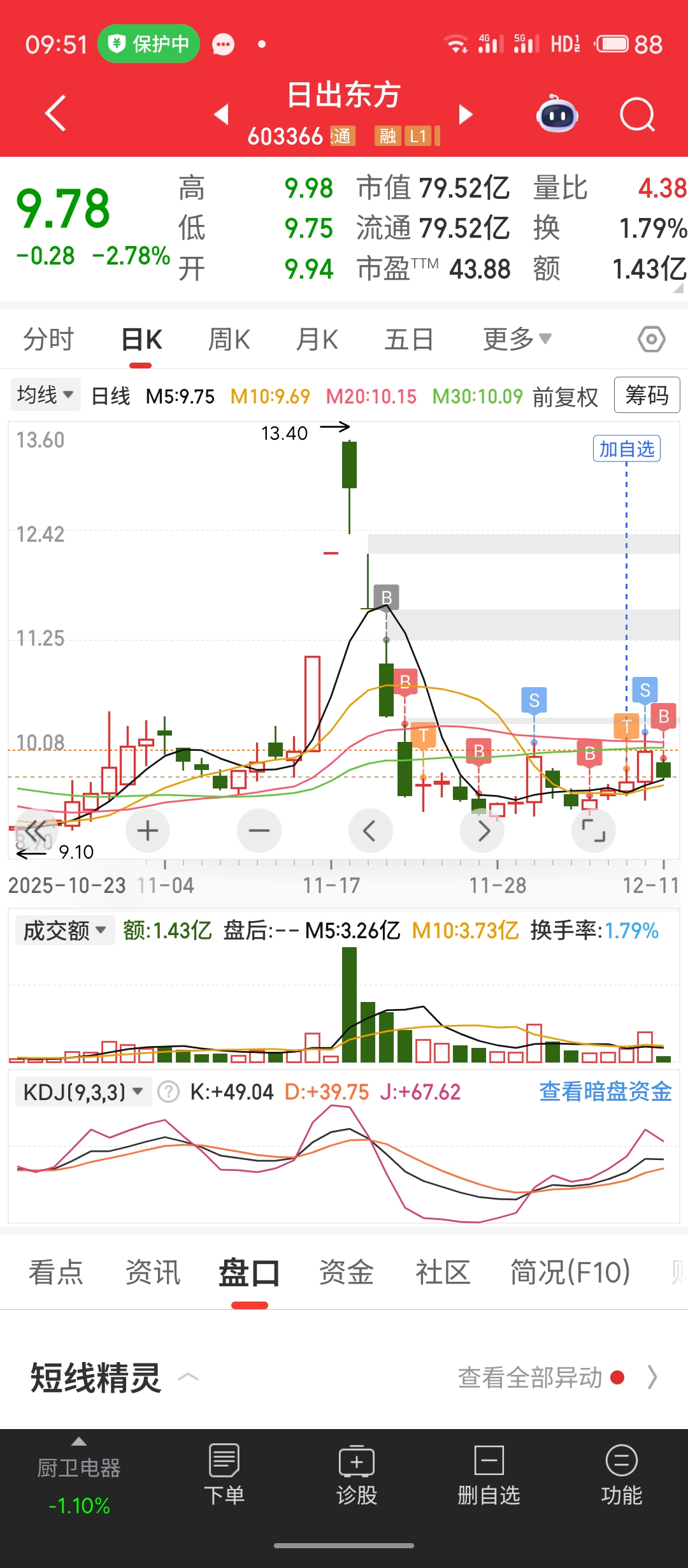 $日出东方(SH603366)$ 昨天回本为什么不跑,又不知道 要t到何时