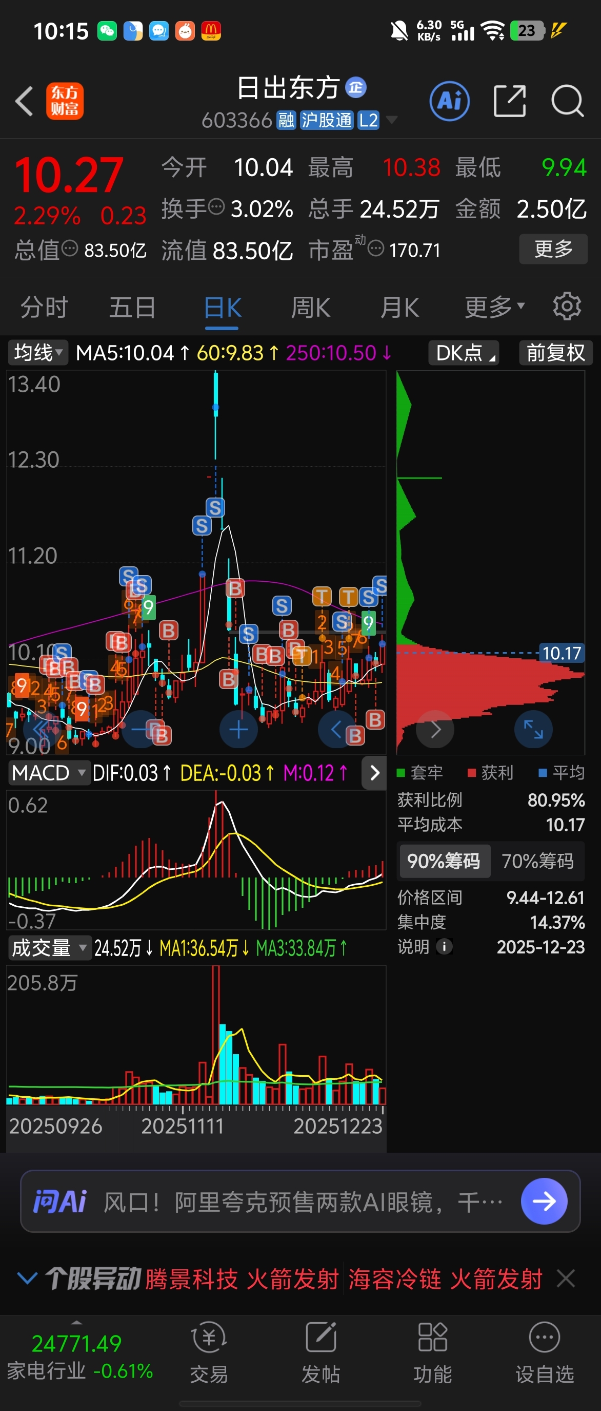 $日出东方(SH603366)$ 10.30清仓了感谢主力最近两个月只有这只票赚钱了9.50我在回来
