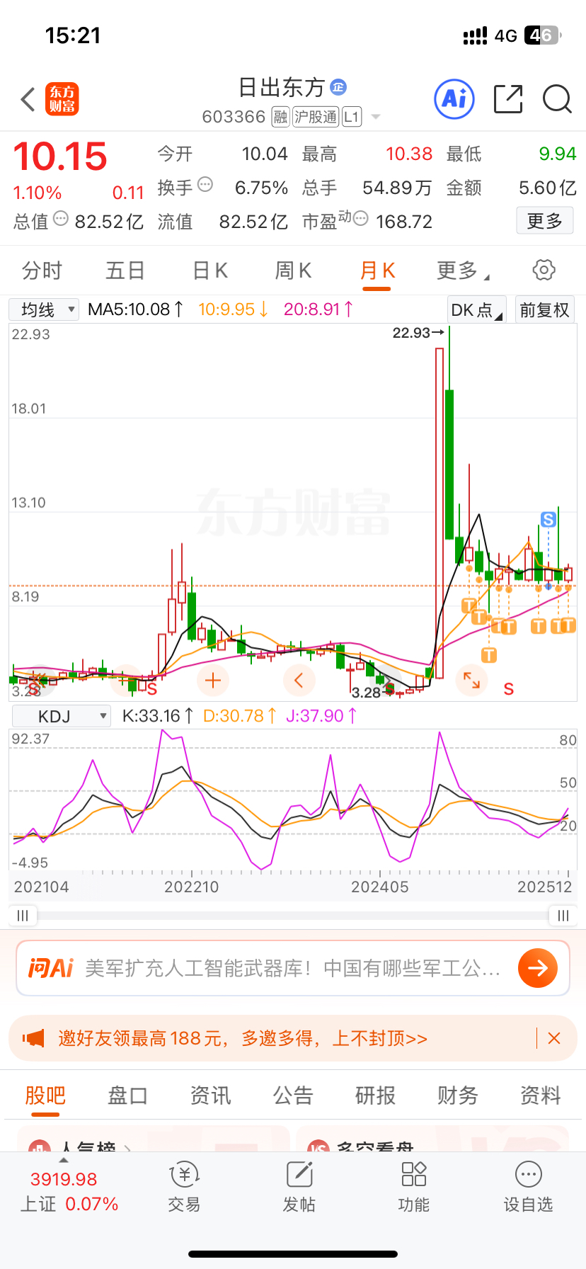 $日出东方(SH603366)$ 我一直在。兄弟们