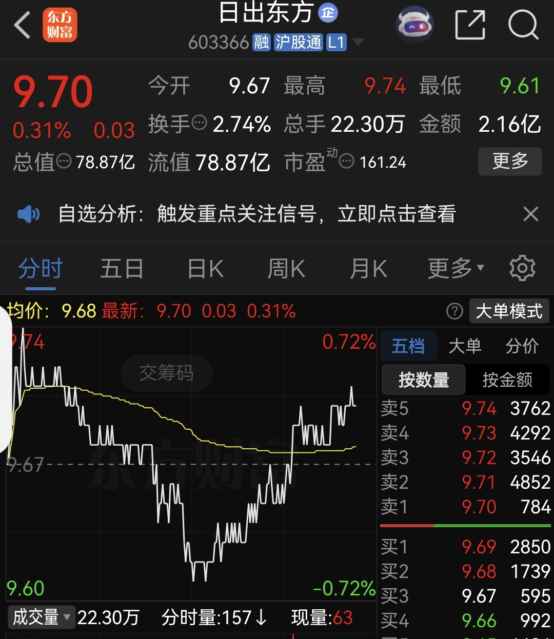 $日出东方(SH603366)$ 几分钱走出了地天板的气势
