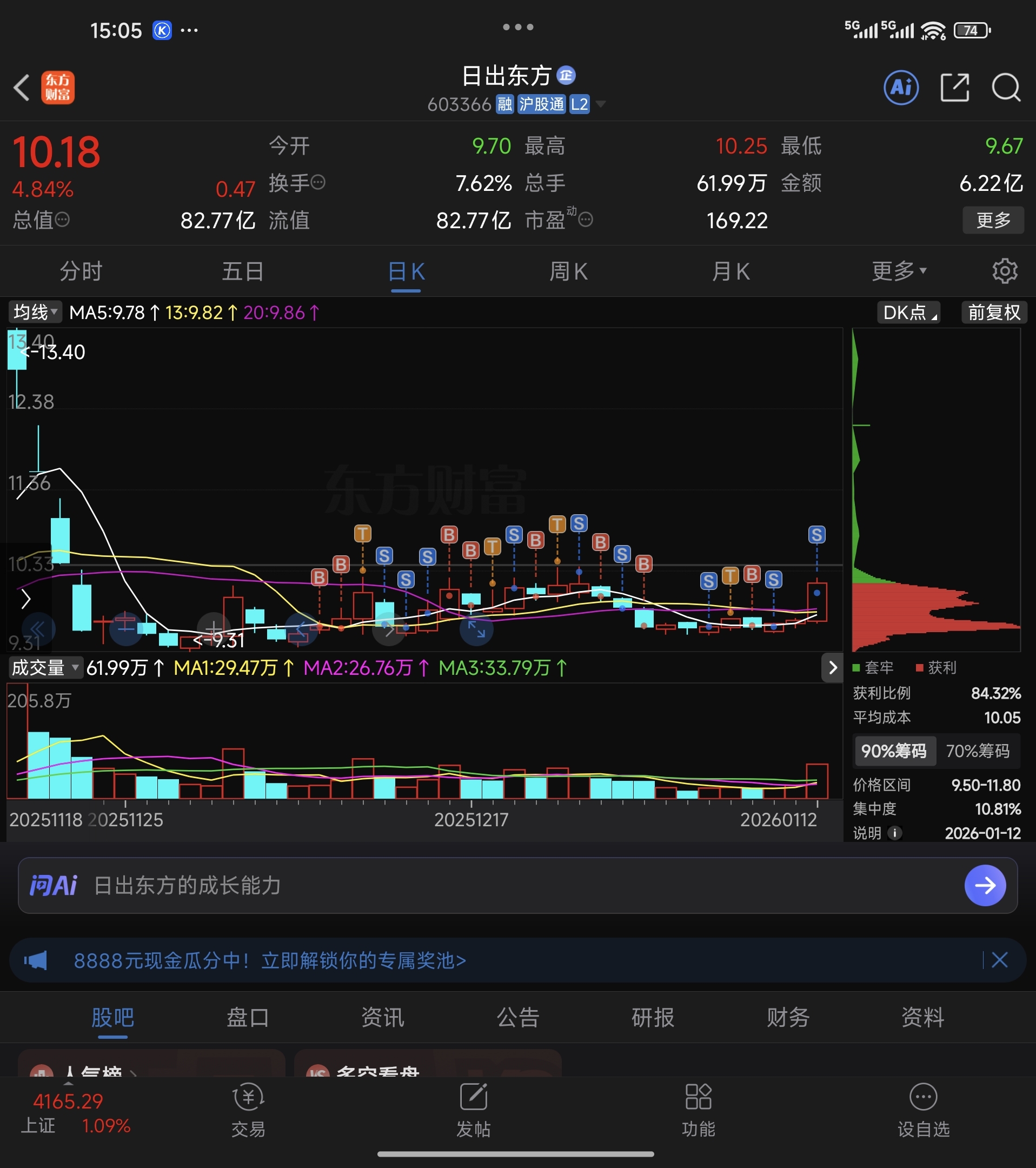 $日出东方(SH603366)$ 实在受不了它了,赚几个点走了