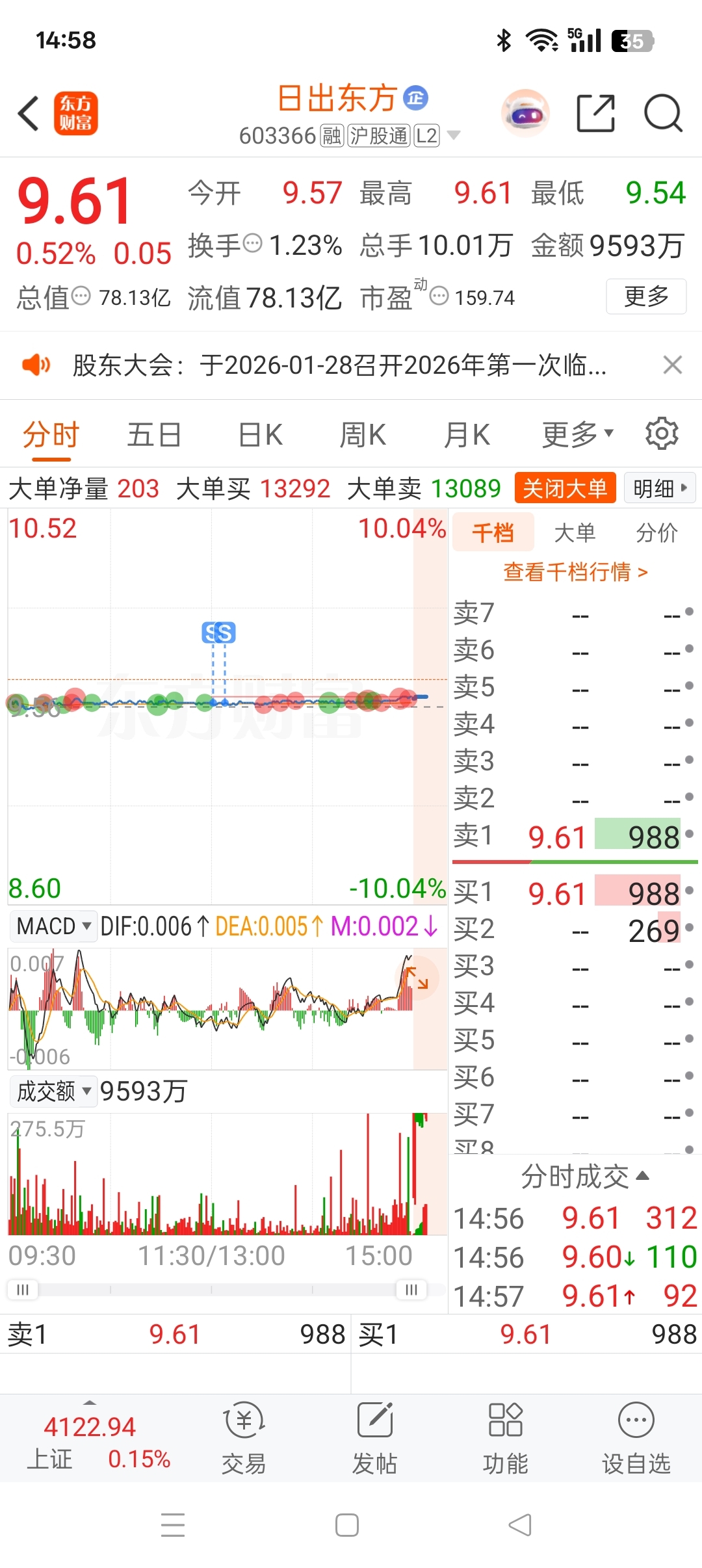 $日出东方(SH603366)$