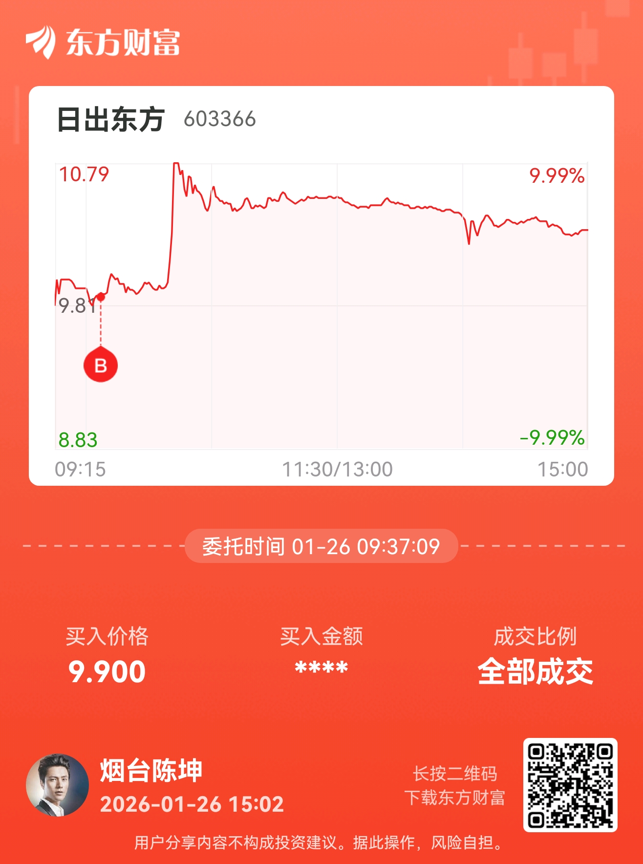 温馨提示: 1.根据《证券法》规定,禁止编造、传播虚假信息或者误导性信息,扰乱证券市场;2.用户在本社区发表的所有资料、言论等仅代表个人观点,与本网站立场无关,不对您构成任何投资建议。用户应基于自己的独立判断,自行决定证券投资并承担相应风险。《东方财富社区管理规定》