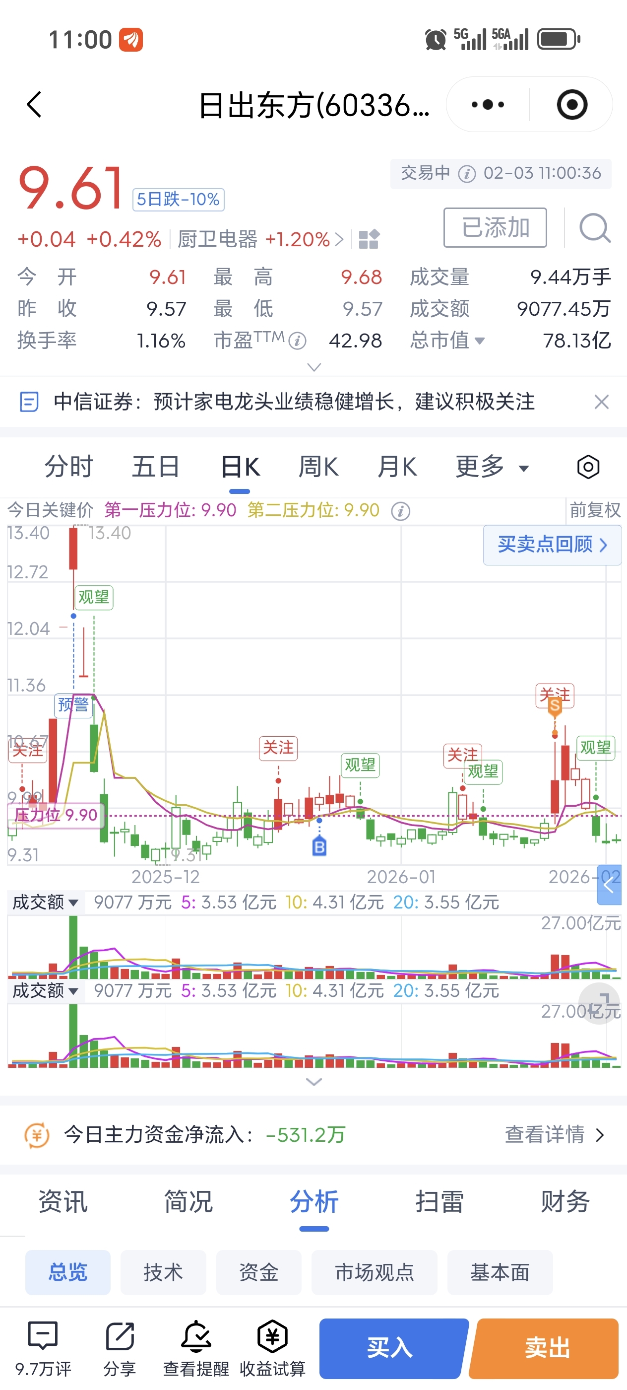 $日出东方(SH603366)$
