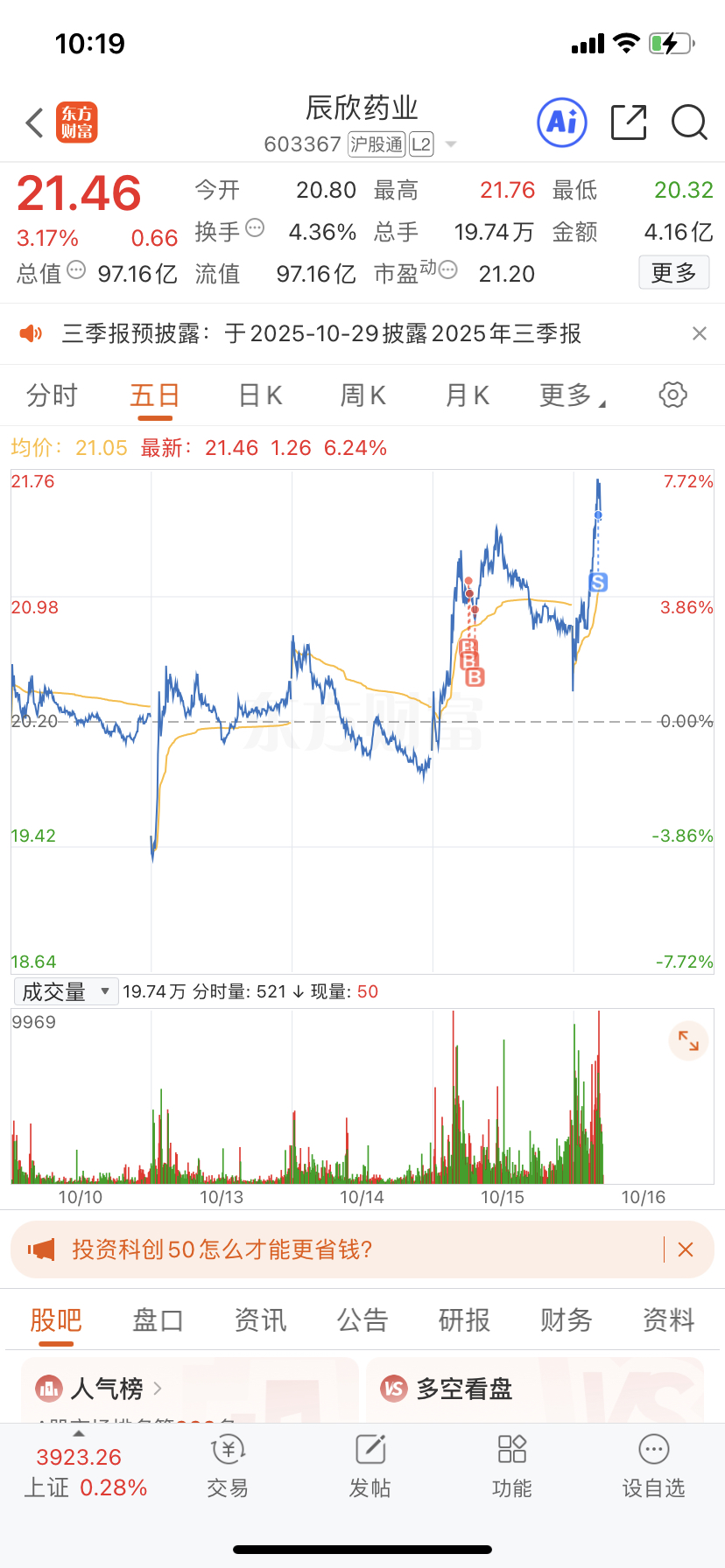 $辰欣药业(SH603367)$ 我先走了