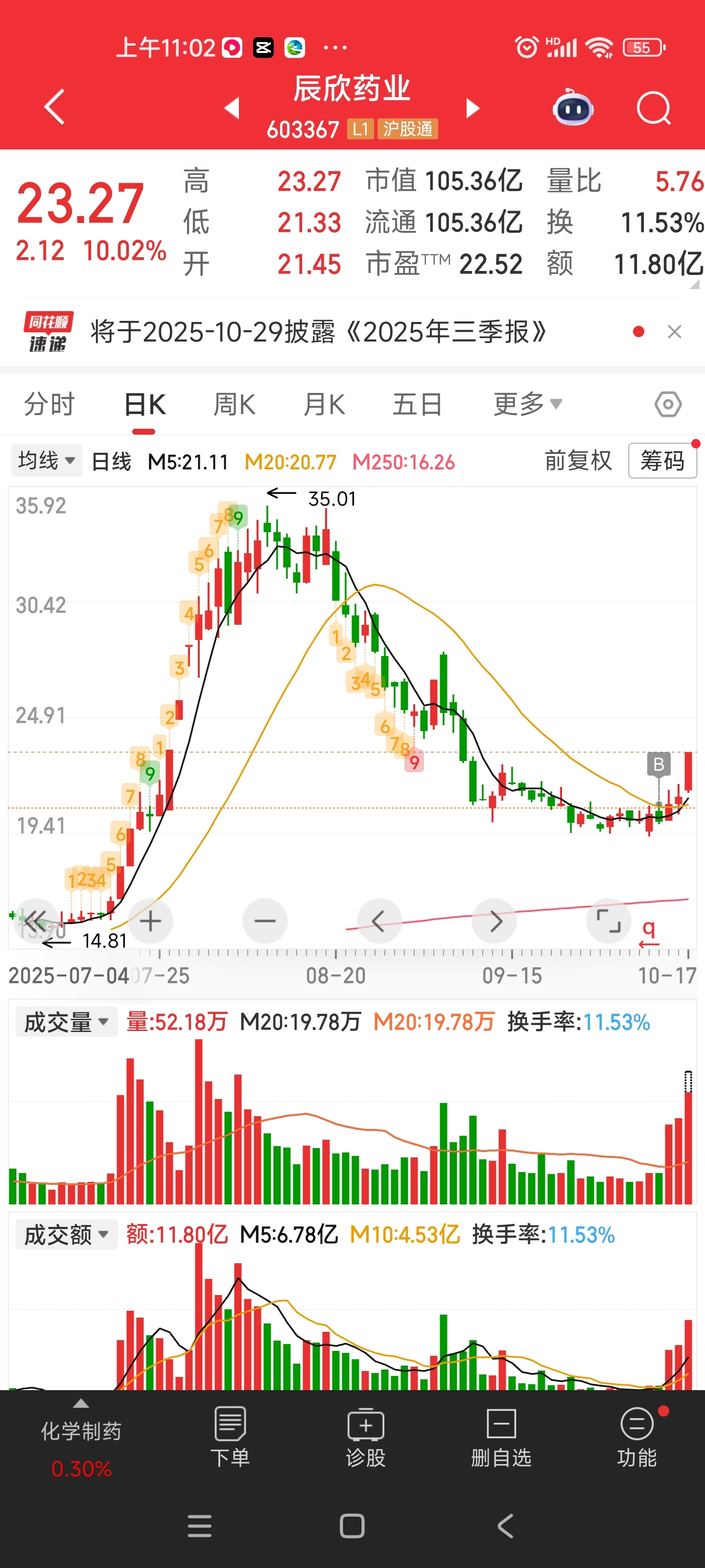 $辰欣药业(SH603367)$ 下周再来个涨停就清仓。