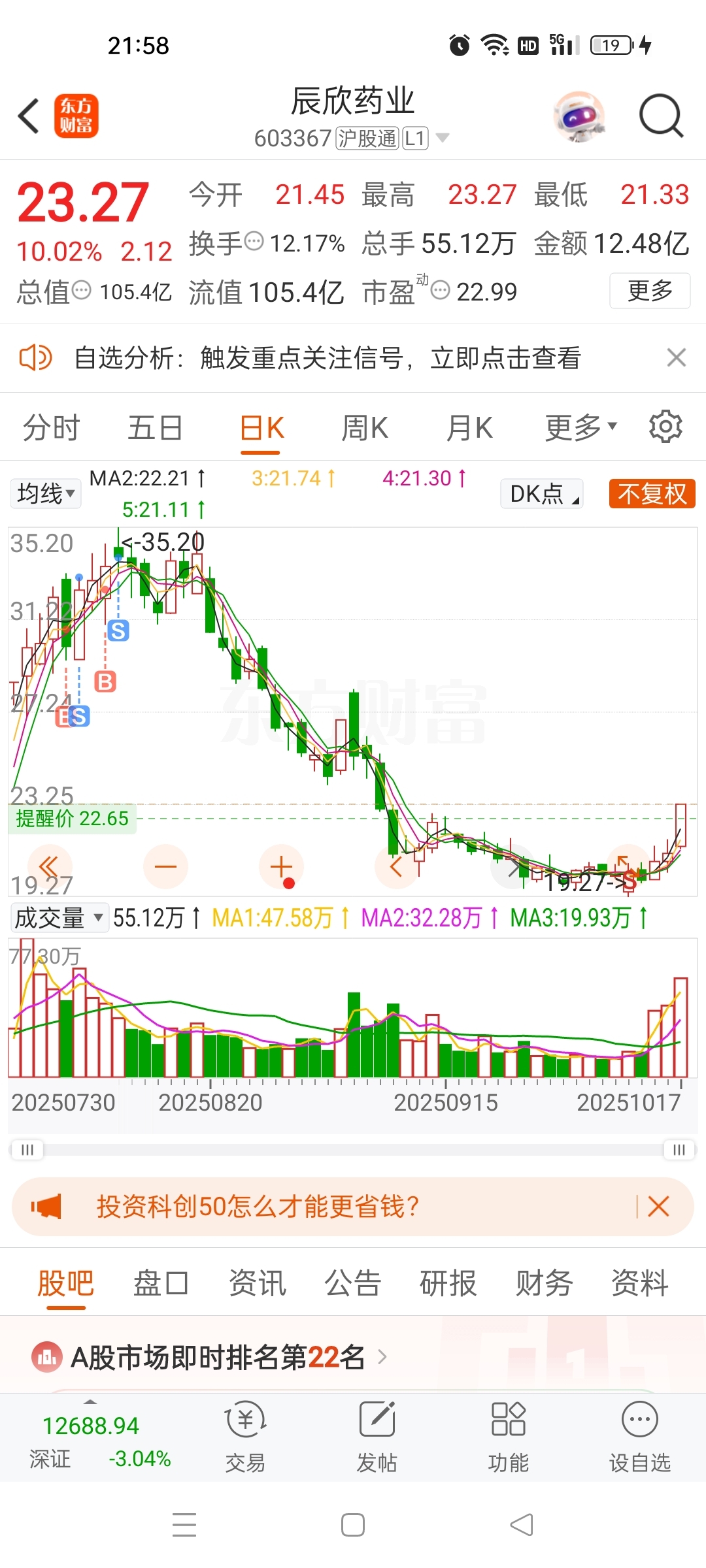 $辰欣药业(SH603367)$ 昨天回封板后3秒排单30分钟没进去就撤了,错过了机会已经开过一次放量后应该9个点直接买