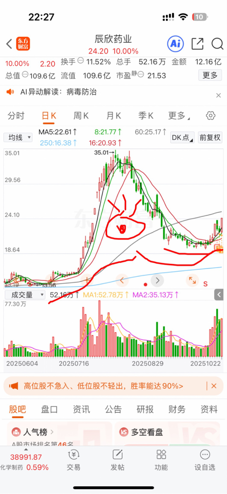 $辰欣药业(SH603367)$ 经典老鸭头,持股待涨