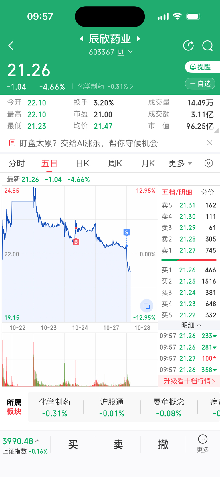 $辰欣药业(SH603367)$ 俏里哇还好跑的快